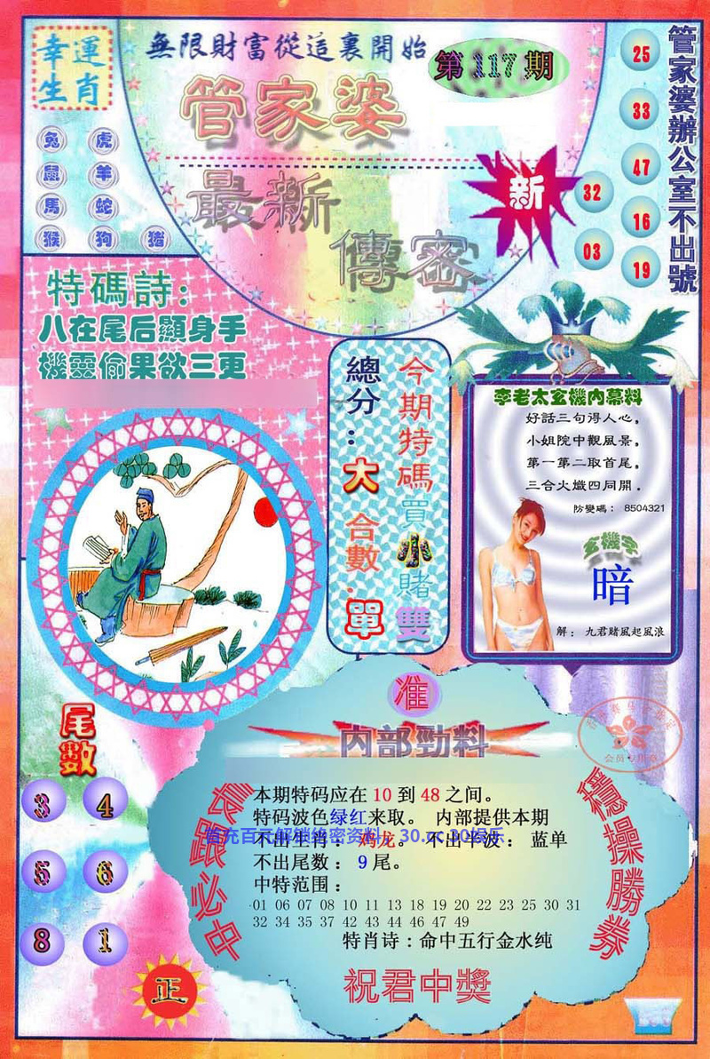 | 117期 | 狗 | 蓝单 | 4头 | 1尾 | 开:虎04 |